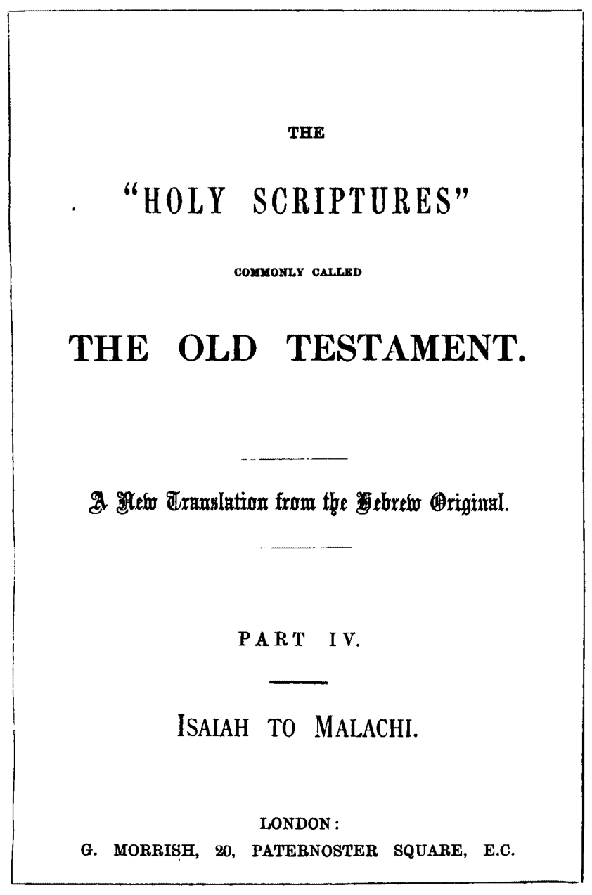 The Holy Bible Containing the Old and New Testaments - Translated from the Original Texts - Part 4: Isaiah to Malachi