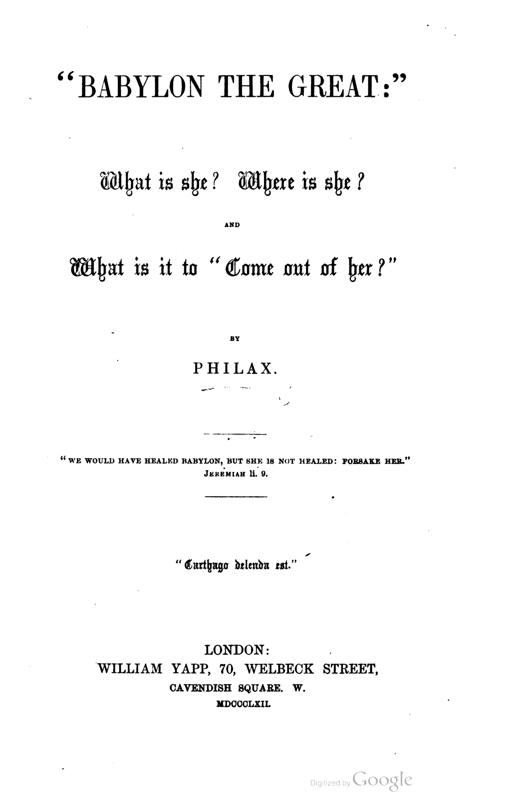 “Babylon the Great:” What is she? Where is she? And what is it to “Come out of her?”