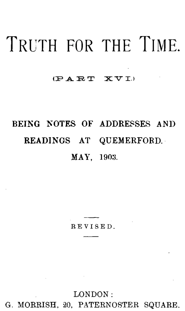 Notes of Addresses and Readings at Quemerford 1903 - May 1903