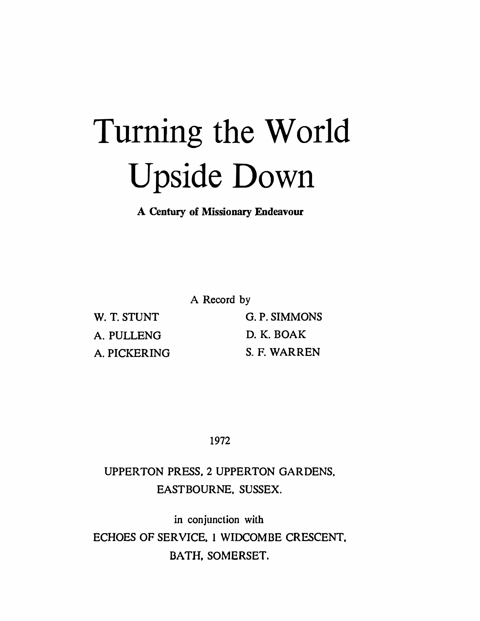 Turning the World Upside Down - A Century of Missionary Endeavour