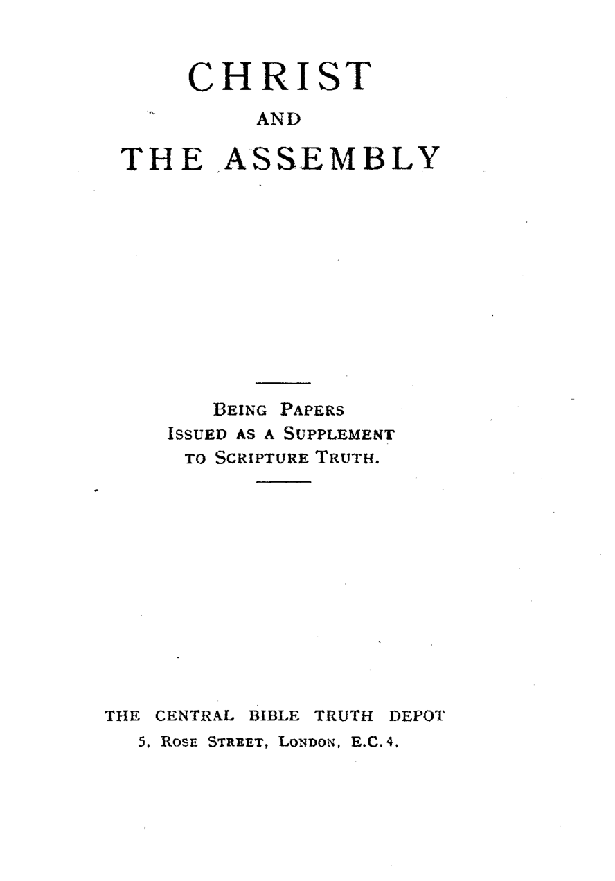 Christ and the Assembly; Being papers issued as a supplement to Scripture Truth.