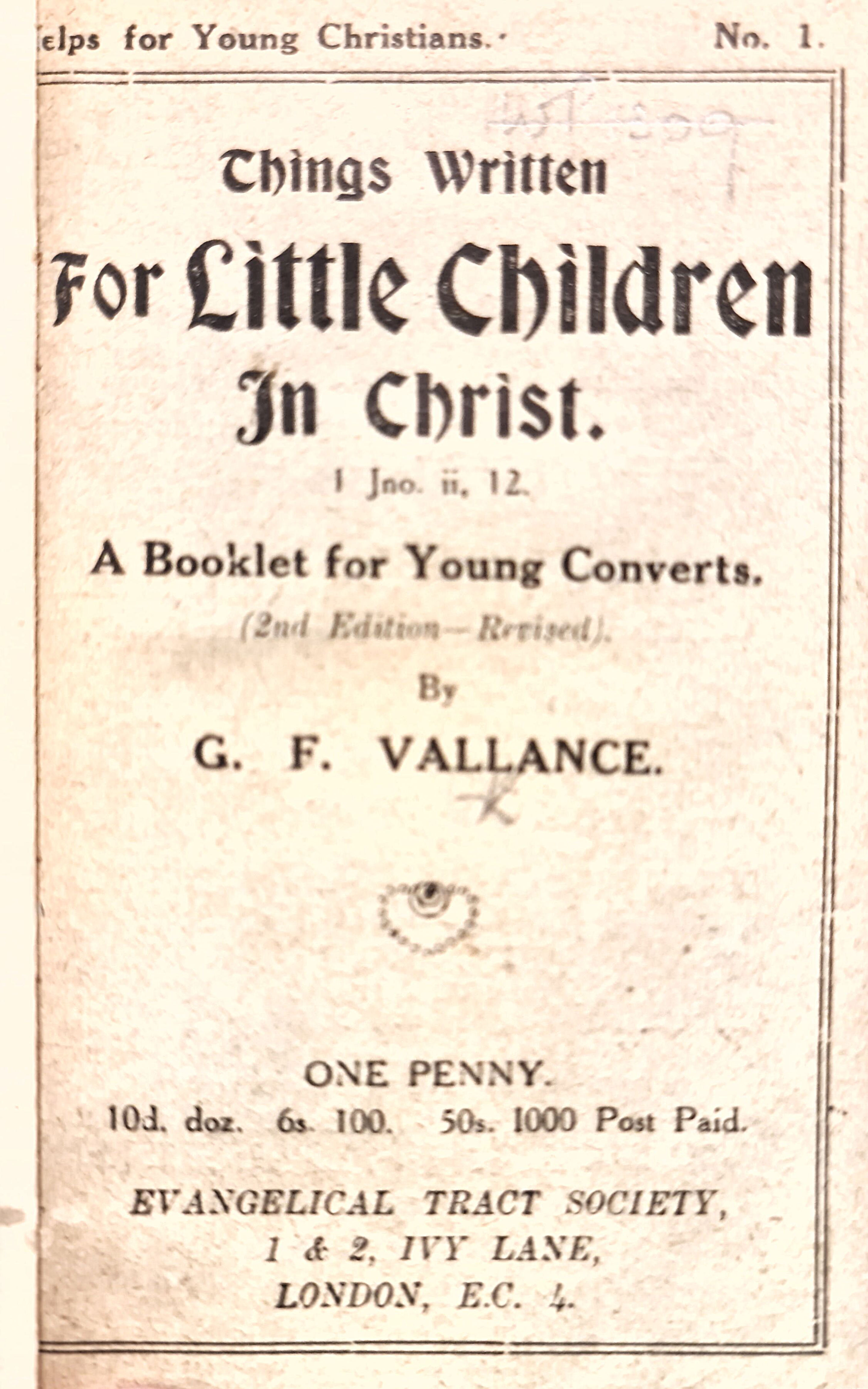 Number: 1 - Helps For Young Christians (Vallance)