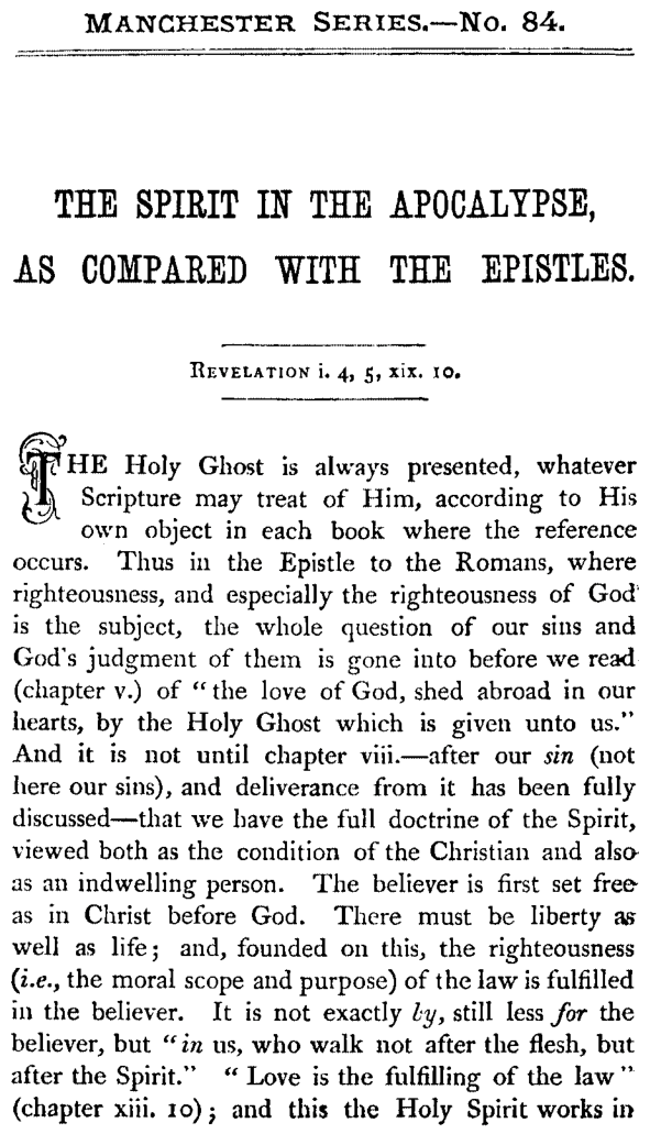 084 - The Spirit in the Apocalypse as compared with the Epistles