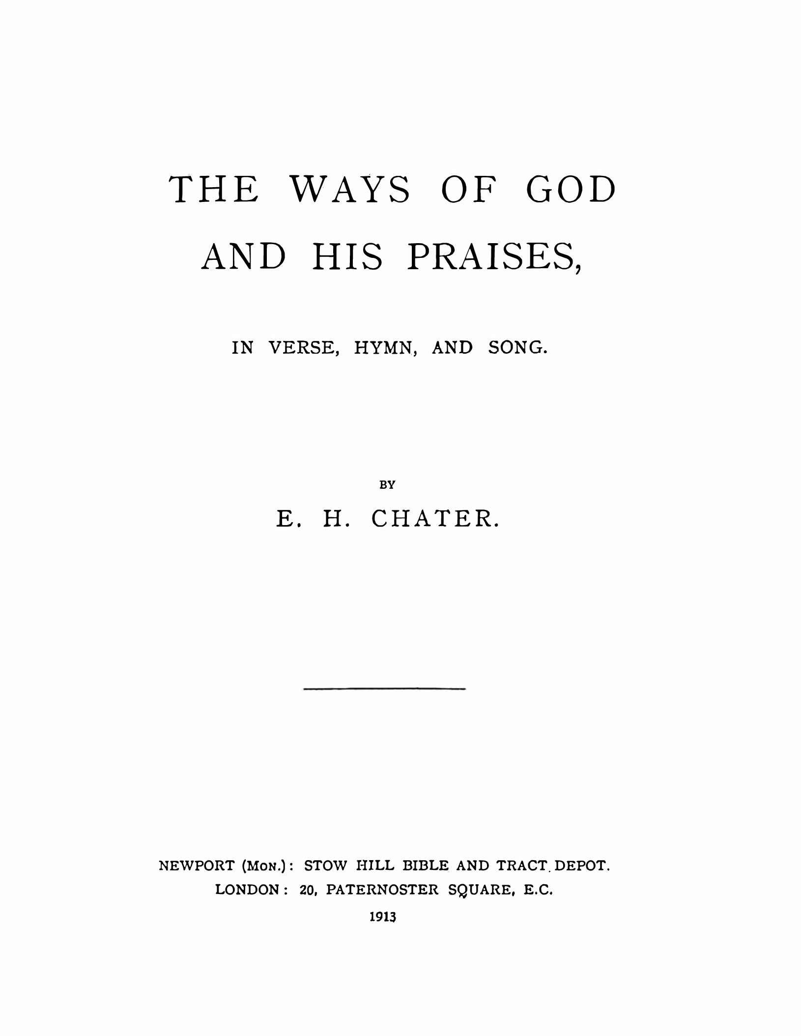 The Ways of God and His Praises, in Verse, Hymn, and Song