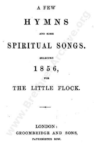 I have my wife's great grandfather's copy of this book. My daughter noticed that it has bound into the back - after the flyleaf - a few pages with 12 additional hymns, some but not all of which were included in the 1881 revision. They are in a different font and look like an unorthodox addition. He was at the meeting in Beulah Road Wimbledon. I wonder if anyone else has seen such a thing? I am thinking if it is evidence that not everyone completely liked the 1856 book, and local meetings had customised additions - they are gospel hymns. If this is of historical interest, I can scan and copy them to Tom.