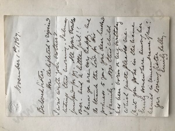 How delighted & rejoiced I was with your brother's tidings this morning. I almost jumped for joy. All your troubles over – and a little girl!! I know you are very happy – and do thank the Lord for His goodness to you & your dear husband & family. Now this child has been born on my birthday which quite pleases me. Can’t you poke in the name Emily somewhere among her names in remembrance of me?