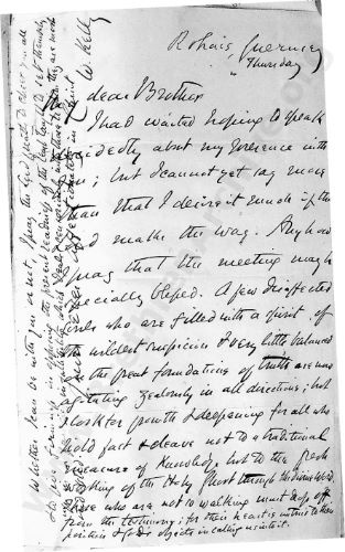 I had waited hoping to speak decidedly about my presence with you; but I cannot yet say more than that I desire it much if the Lord make the way. Anyhow I pray that the meeting may be specially blessed. A few disaffected souls who are filled with a spirit of the wildest suspicion & very little balanced on the great foundations of truth are now agitating zealously in all directions; but I look for growth & deepening for all who hold fast & cleave not to a traditional measure of knowledge but to the fresh working of the Holy Ghost through the divine Word. Those who are not so walking must drop {?} off from the testimony; for their heart is untrue to their position & God’s objects in calling us into it.