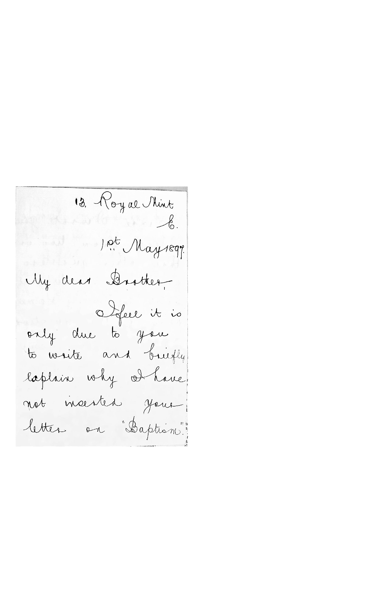 Letter of W.J. Hocking