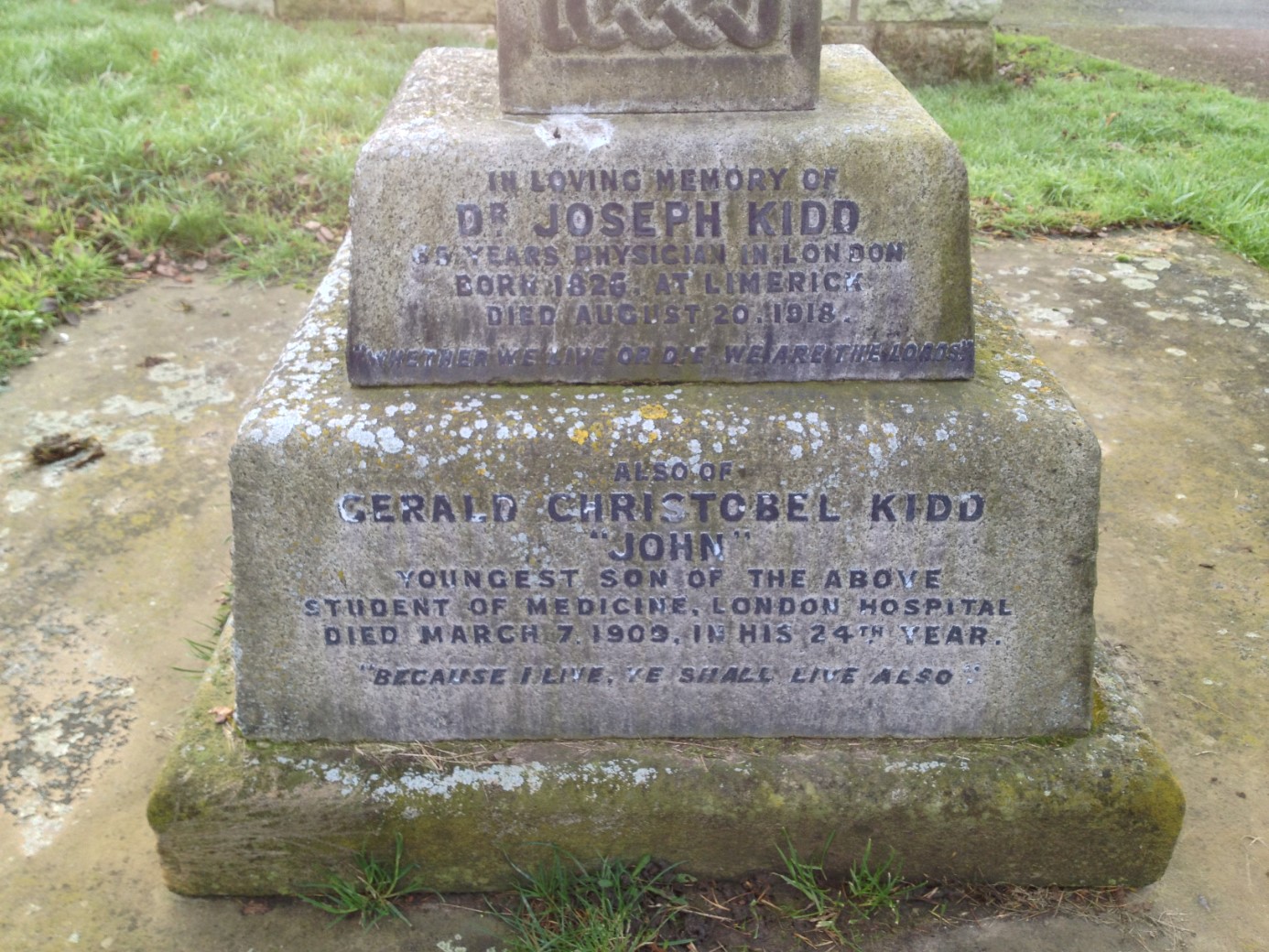 W.G. Turner writes:"Another reminiscence of those days kindly contributed by an old friend may be appropriately inserted here. He writes: "You probably knew Dr. Joseph Kidd, famous as he was for his skill and generosity, and as being the personal physician of Lord Beaconsfield. I used to hear during my life in London of that Monday evening in April, 1881, when the prayer meeting was interrupted by a postman arriving with a summons to Dr. Kidd to wait on the dying Premier. We all have heard or many have done of Dr. Kidd's guinea fees, and how he put the guineas into a box. If a poor patient turned up out came the guineas to assist the needy brother." Personal recollections of the good doctor are chiefly of his stately entrance with Mrs. Kidd and the younger branch of the family on Sunday mornings. His snowy head, patriarchal beard, benign countenance and dignified bearing is not easily forgotten after the lapse of so many years. His reading of Psalm 65, "Praise waiteth for Thee O God in Zion," followed by a prayer in quiet reverent tones commencing with "Holy Father," made a deep impression."