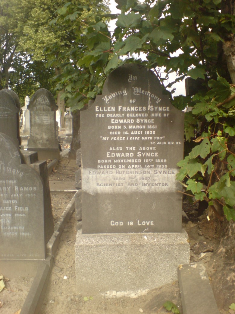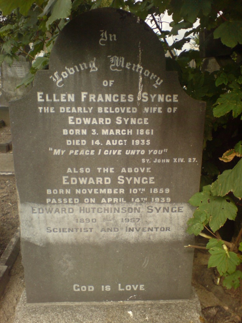 This -- as evidenced by the dates shown for his life (1859-1939) -- is in fact the grave of a grandson of John Synge of Glanmore, and not that of Bellett's and Darby's friend Edward Synge (1788-1882) who was John Synge's cousin (and lived and preached in the west of Ireland).