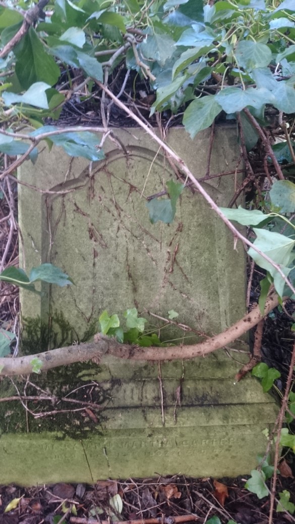 A hard to find grave in a very over-grown part of Nunhead cemetery! Photos not great; grave could do with a bit of a clean-up. William Carter was a well known evangelist in 1860s London and further afield; as well as being father of S.J.B. Carter who was well known among the Taylor Brethren, living in Australia. See my page on Carter for more information.