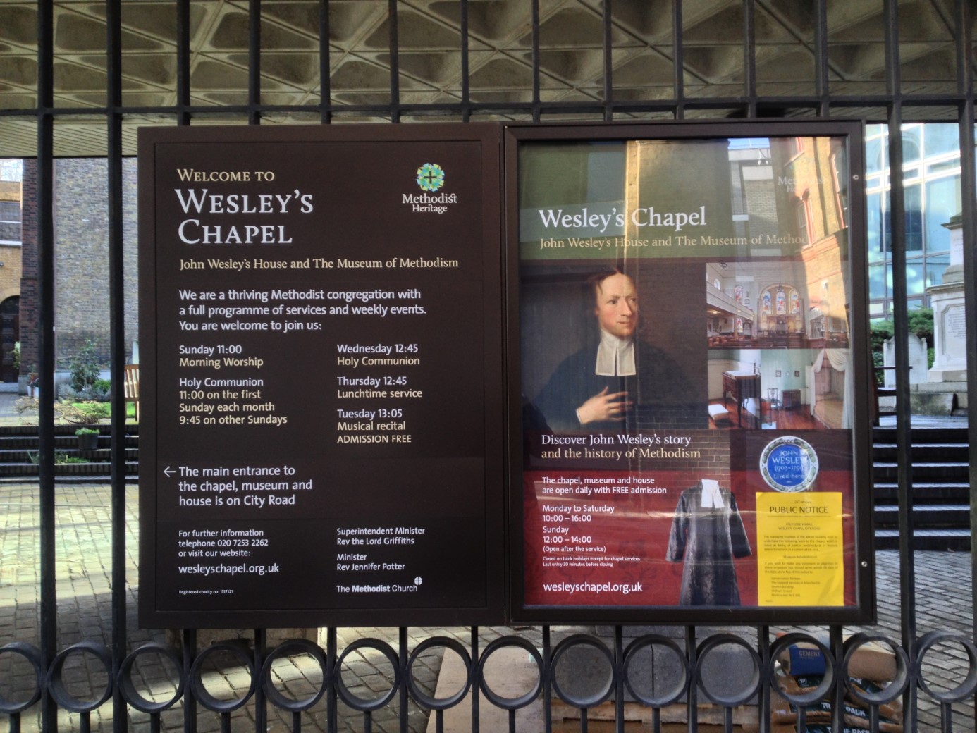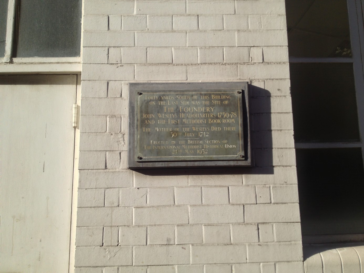 A plaque on a nearby street commemorates the 'Site of the Foundery' - John Wesley's first London base, and bookroom.