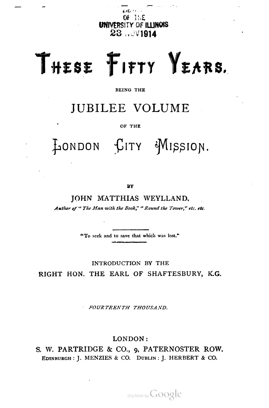 These Fifty Years: Being the Jubilee Volume of the London City Mission