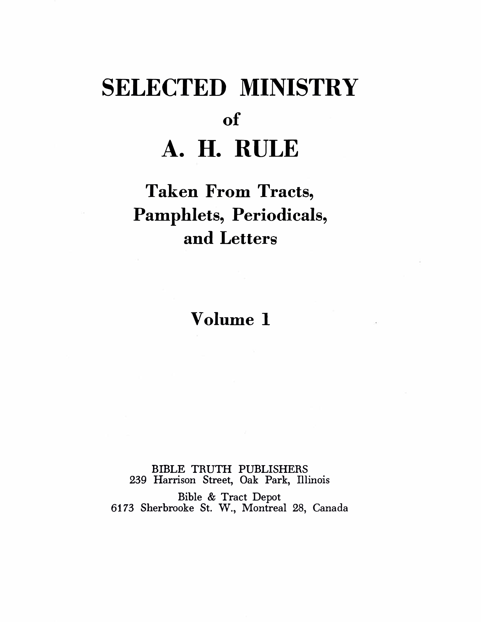 Selected Ministry of A.H. Rule. Taken from Tracts, Pamphlets, Periodicals, and Letters. Volume 1