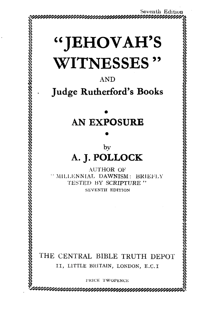 "Jehovah's Witnesses" and Judge Rutherford's Books; An Exposure