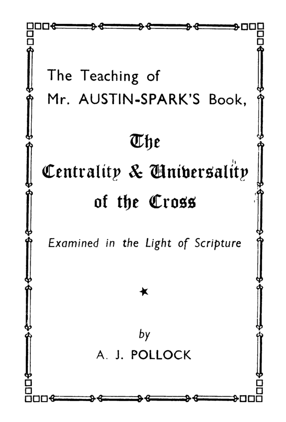 The Teaching of Mr. T. Austin-Spark’s Book, The Centrality and Universality of the Cross, Examined in the Light of Scripture