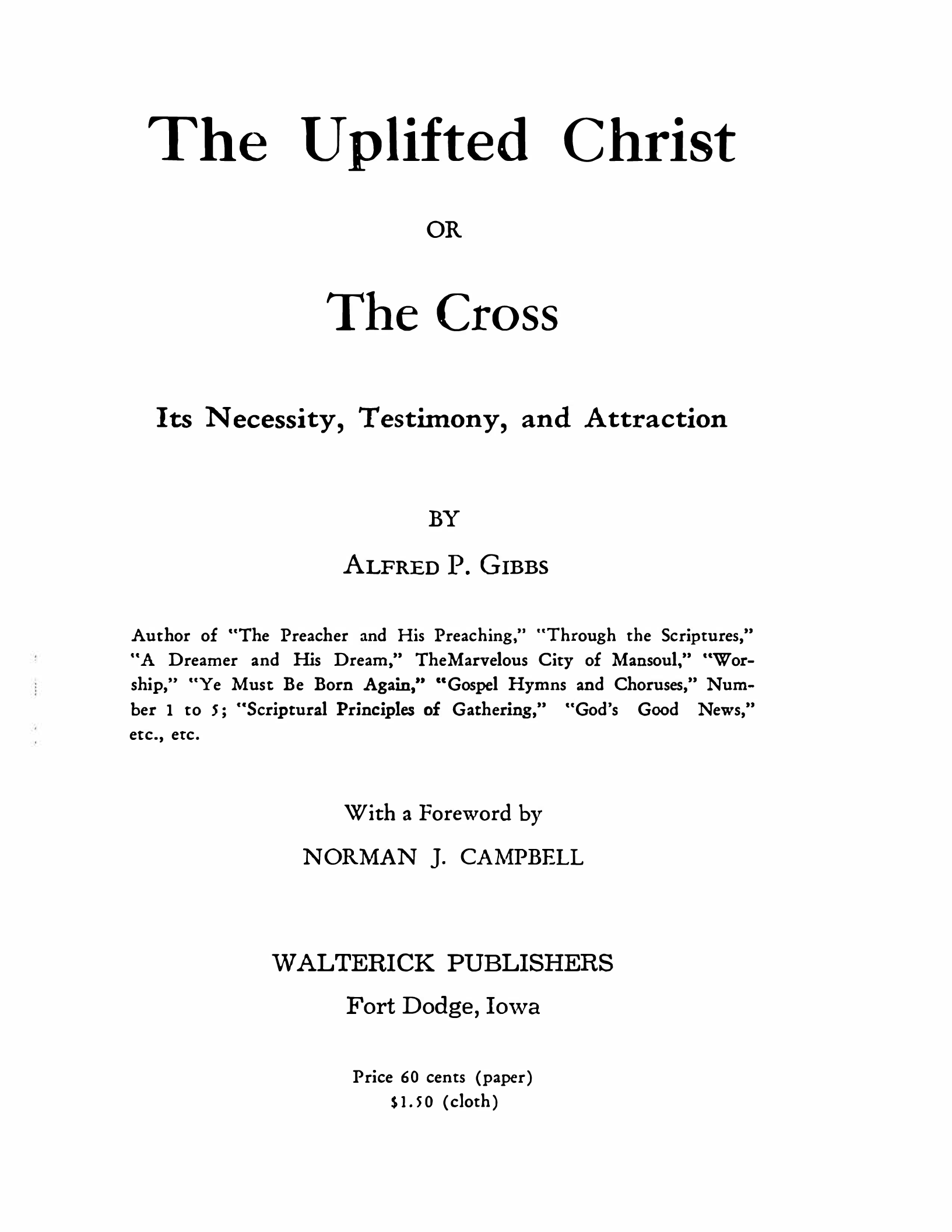The Uplifted Christ: or, The Cross Its Necessity, Testimony, and Attraction