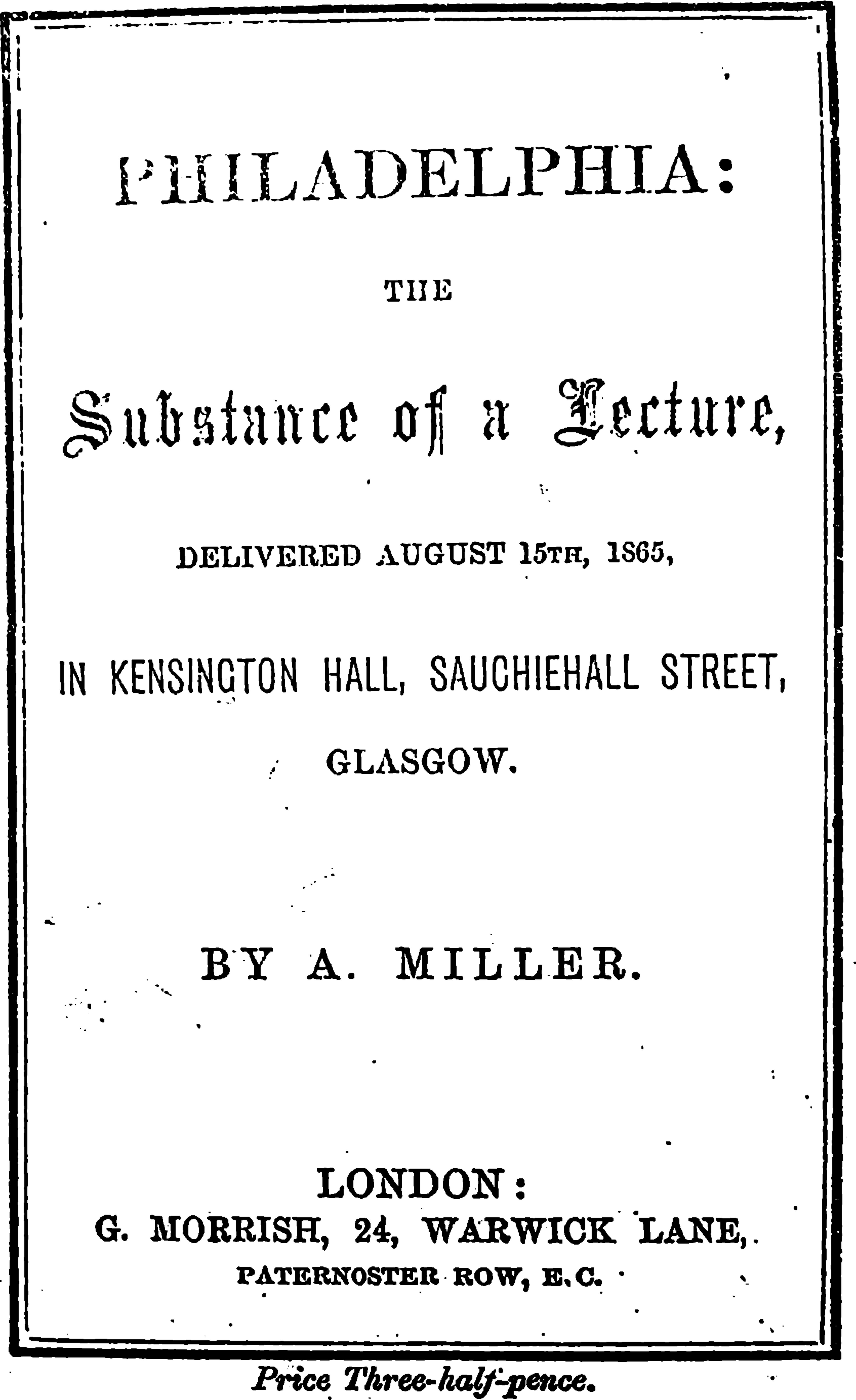 Philadelphia: The Substance of a Lecture, Delivered August 15th, 1865
