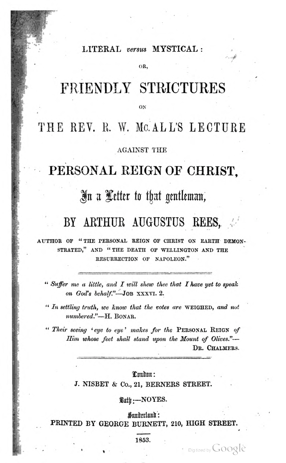 The Question Answered: Will the Millennial Reign of Christ be Spiritual Alone, or both Spiritual and Personal?