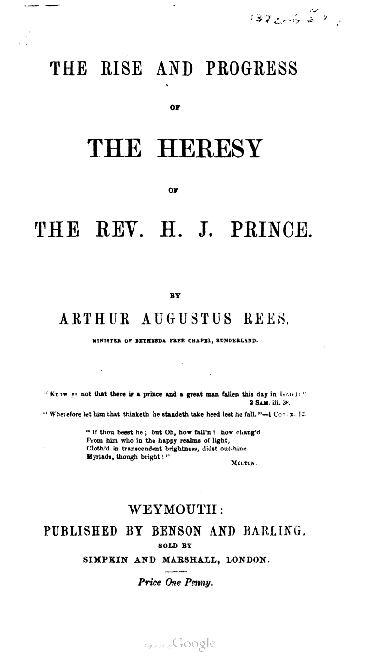 The Rise and Progress of the Heresy of Rev. H. J. Prince