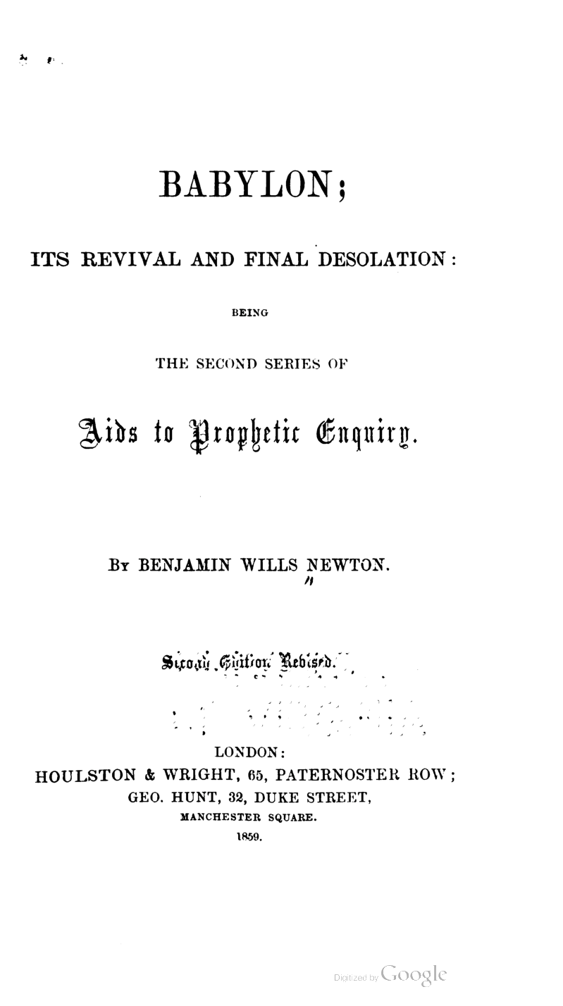 Babylon, its Revival and Final Desolation: Being the Second Series of Aids to Prophetic Enquiry