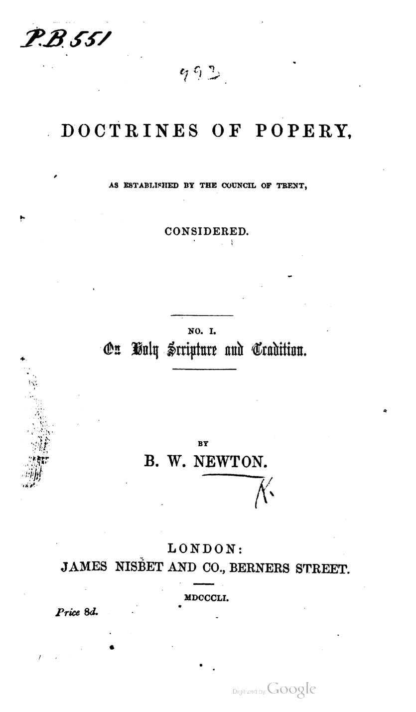 Doctrines of Popery, as established by the Council of Trent, considered. No. 1 on Holy Scripture and Tradition