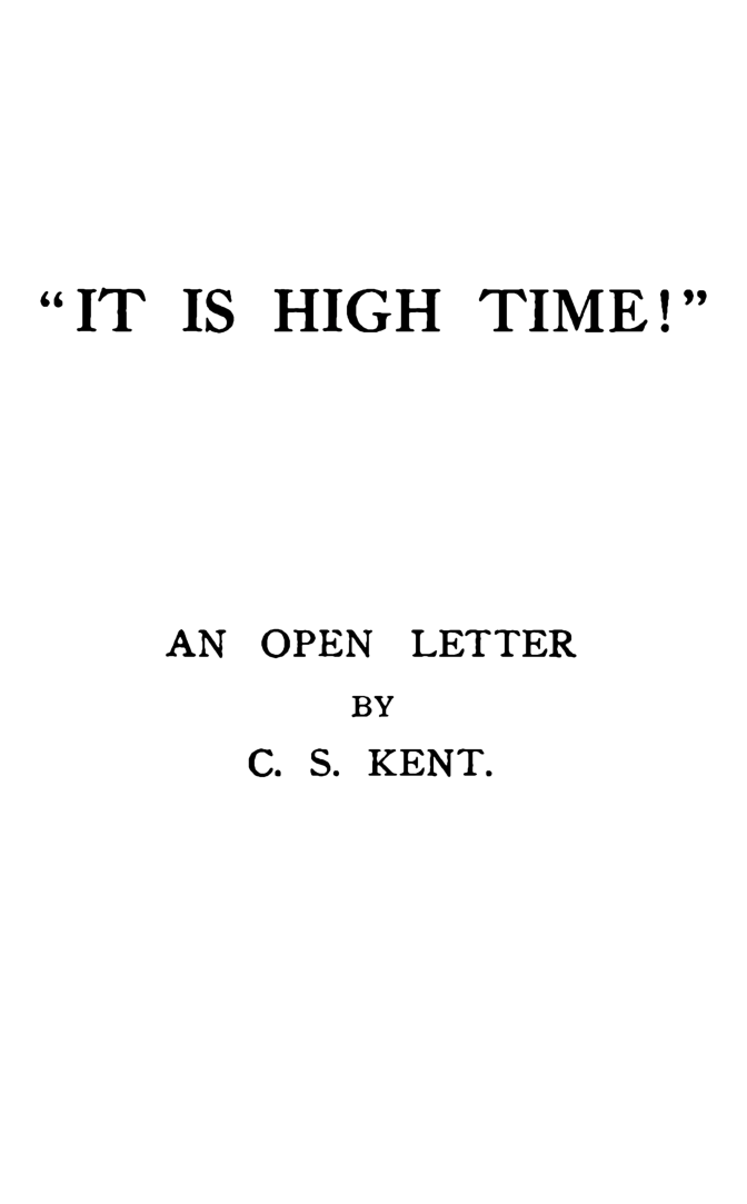 "It Is High Time!". An Open Letter