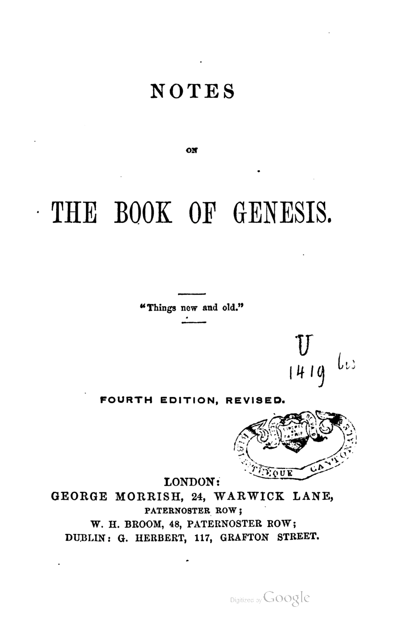 Notes on the Book of Genesis (4th Edition)