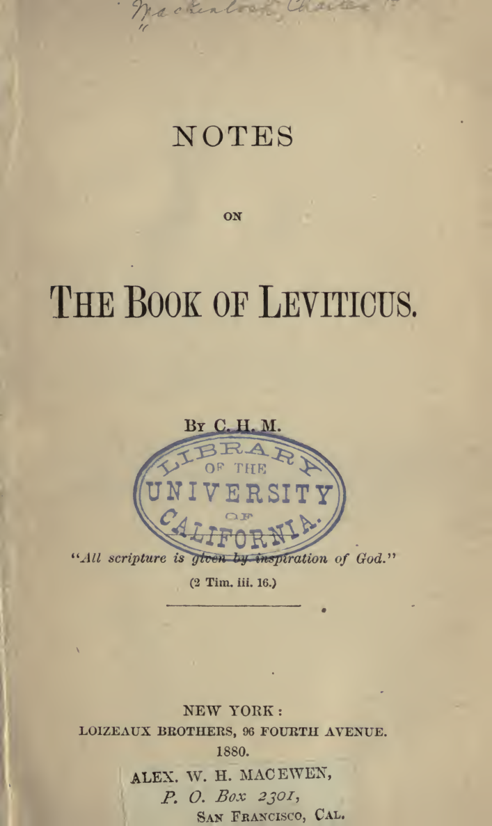 This one https://archive.org/details/notesonbookoflev1870mack published by Henry Longstreth in Philadelphia would be an example of the 'unauthorised' editions CHM mentions in the intro.