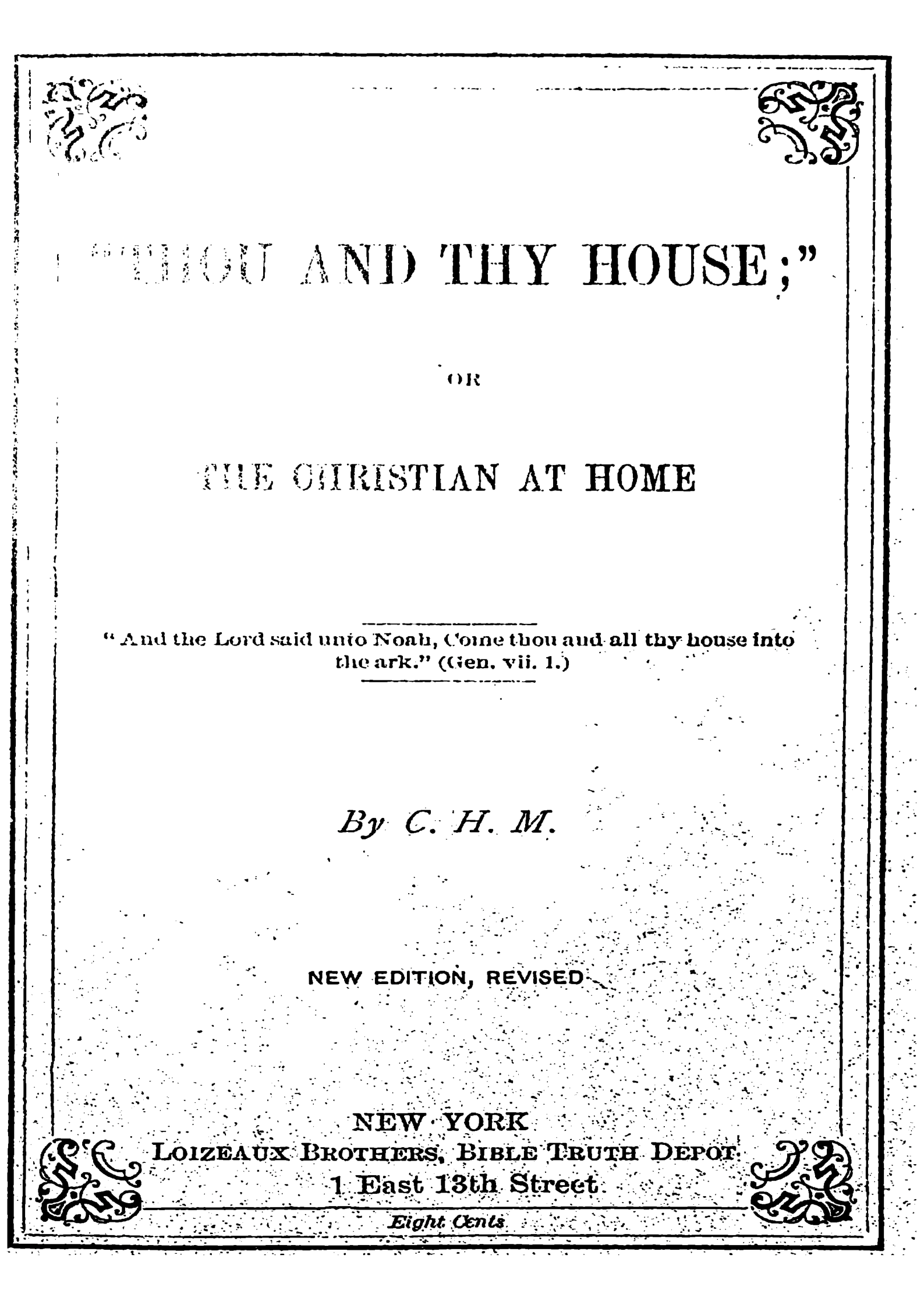 “I am glad you have called my attention to my little book, “Thou and Thy House.” I am aware of the use which has been made of it in a recent tract on the subject of “Baptism.” With the theory of that tract I have no sympathy whatever; still less with its monstrous statements.”