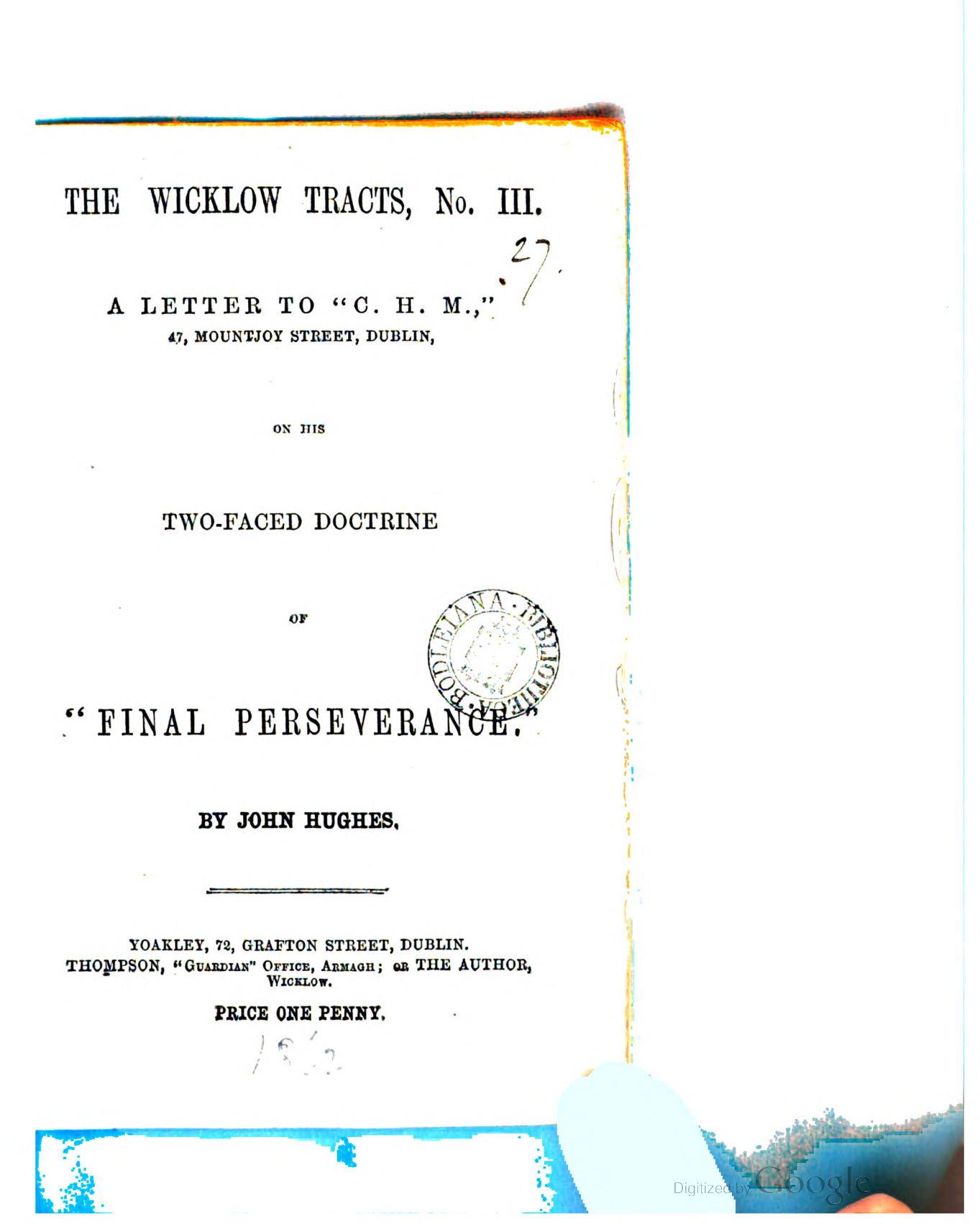 A letter to 'C.H.M.,' 47, Mountjoy street, Dublin, on his two-faced doctrine of 'Final perseverance' [as expressed in Things new and old].