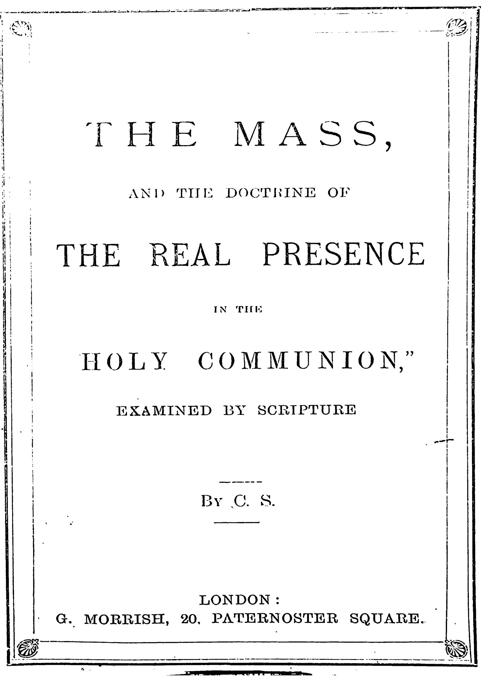 The Mass, and the Doctrine of the Real Presence in the Holy Communion, Examined by Scripture
