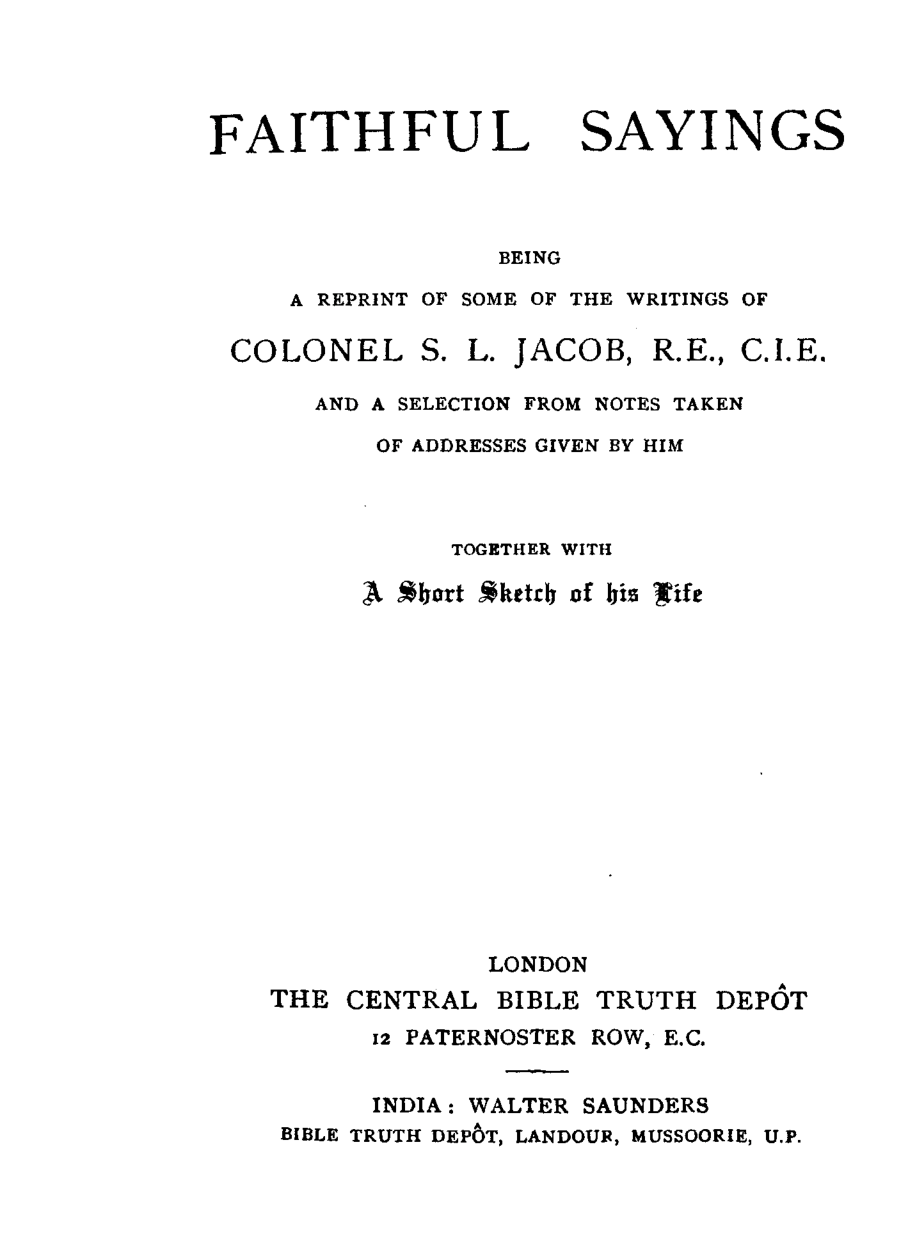 Furthermore, can anyone shed light on Col. Jacob's service amongst the gatherings in India? I once met a sister in Mumbai (sister Benjamin) whose father had received help from Col. Jacob for his medical studies.