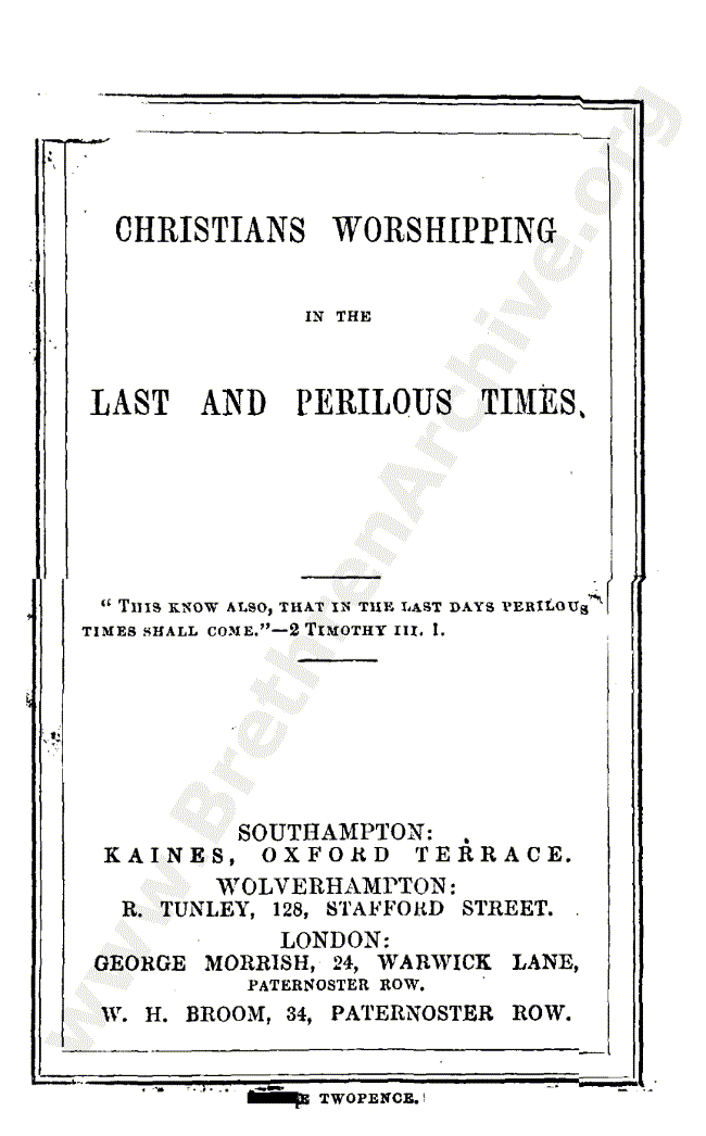 Christian Worshipping in the Last Perilous Times