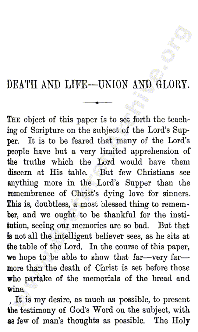 Death and Life - Union and Glory, or Truths Connected with the Lord's Supper