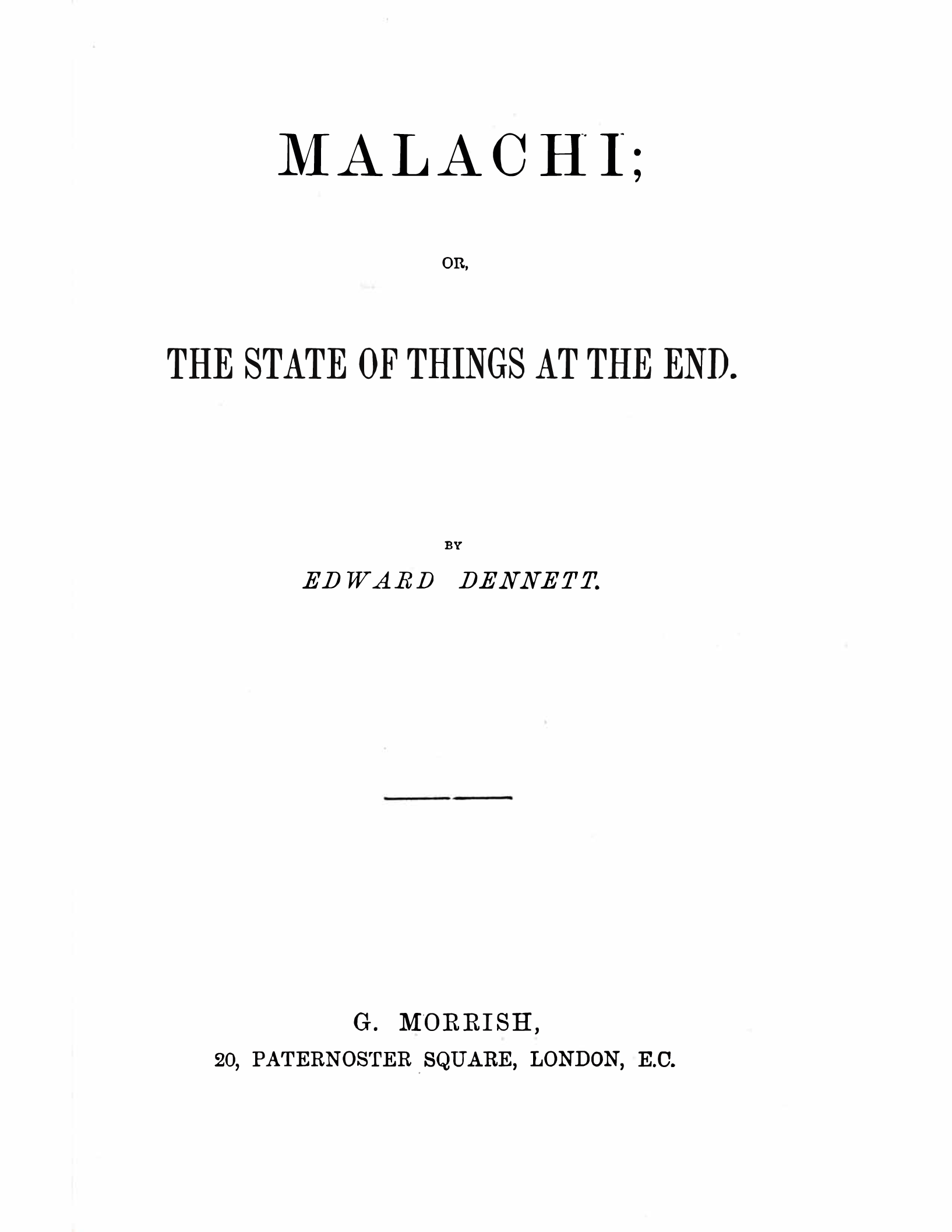 Malachi; Or, The State Of Things At The End