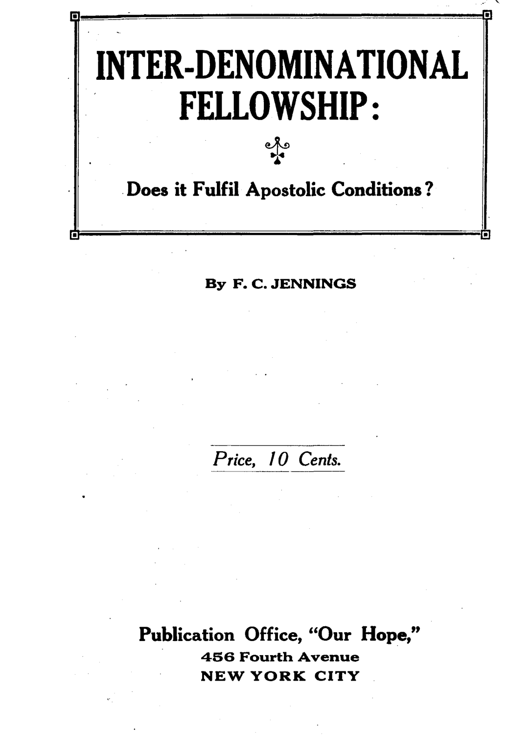 Inter-Denominational Fellowship: Does it fulfil Apostolic Conditions?