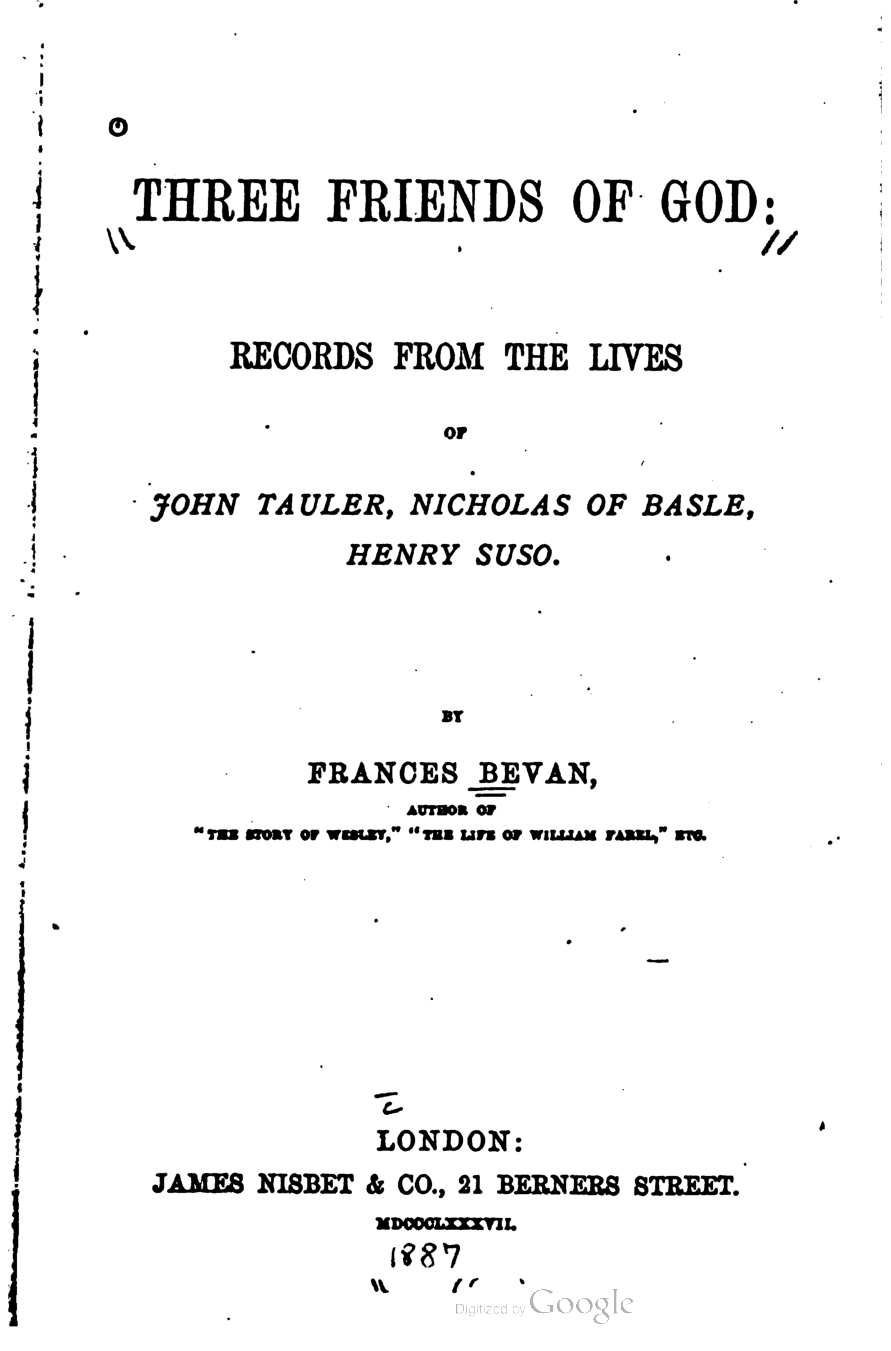 Three Friends of God: Records from the Lives of John Tauler, Nicholas of Basle, Henry Suso