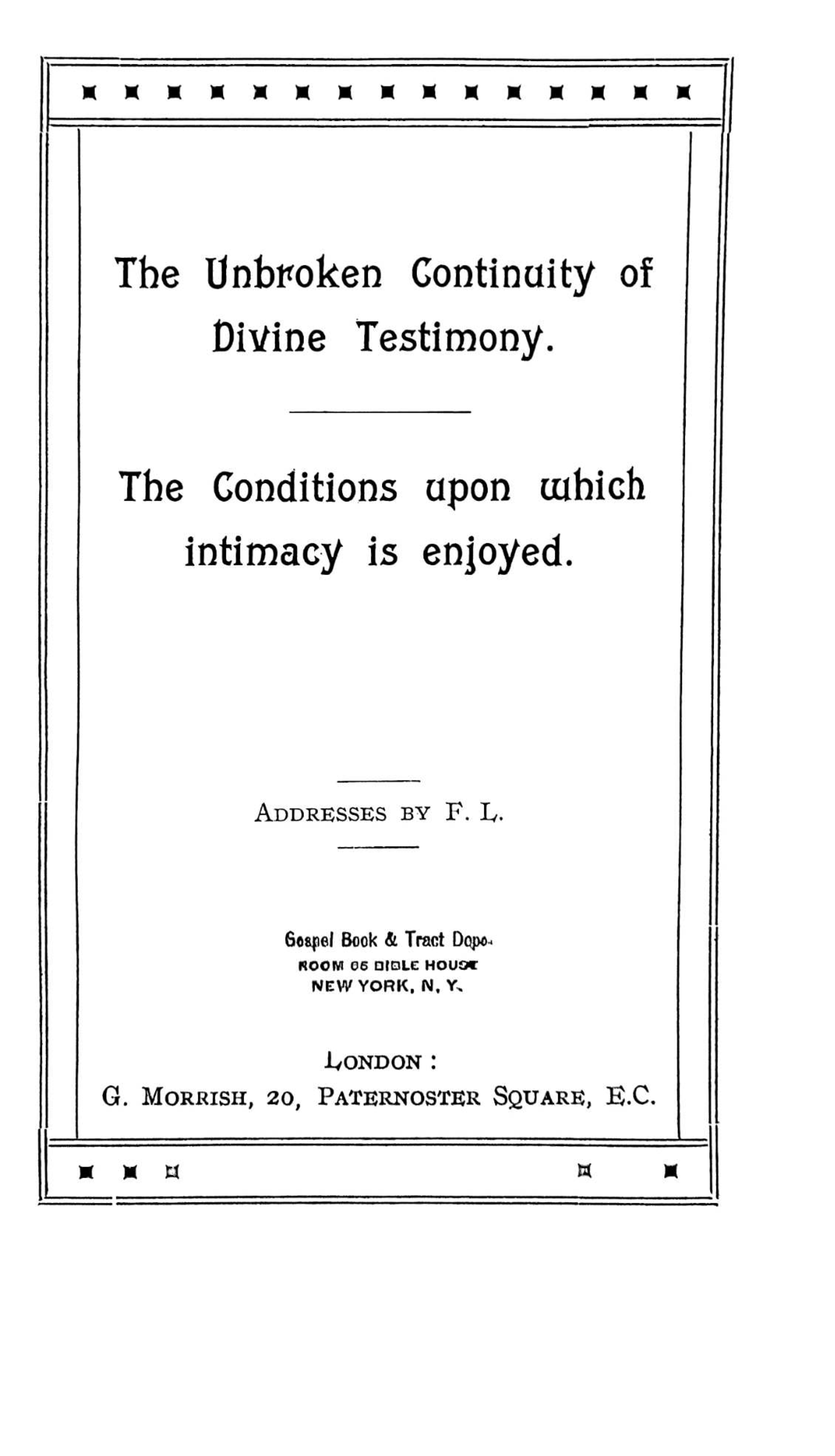 The Unbroken Continuity of Divine Testimony. The Conditions Upon which Intimacy is Enjoyed.