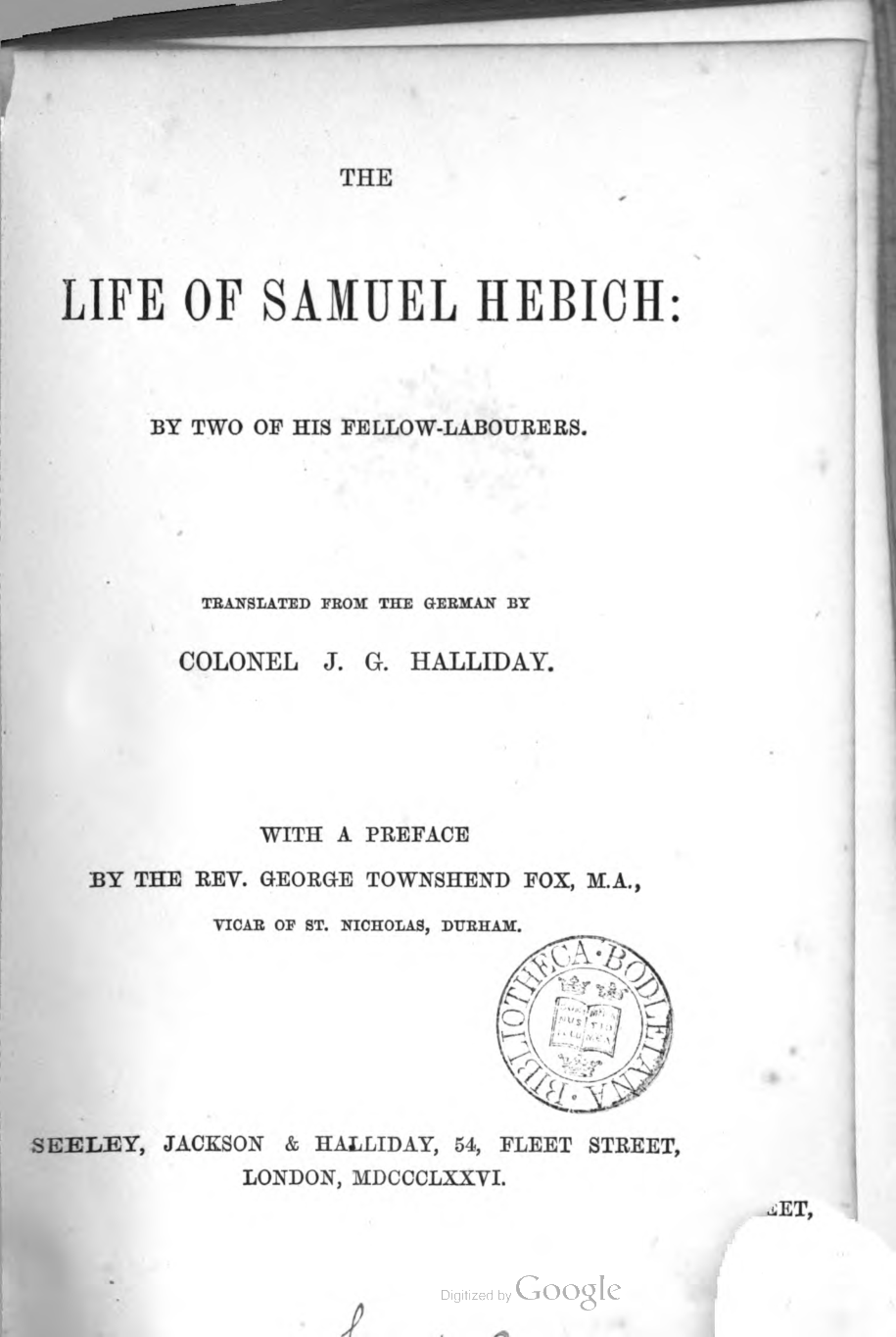 The Life of Samuel Hebich: By Two of His Fellow Labourers