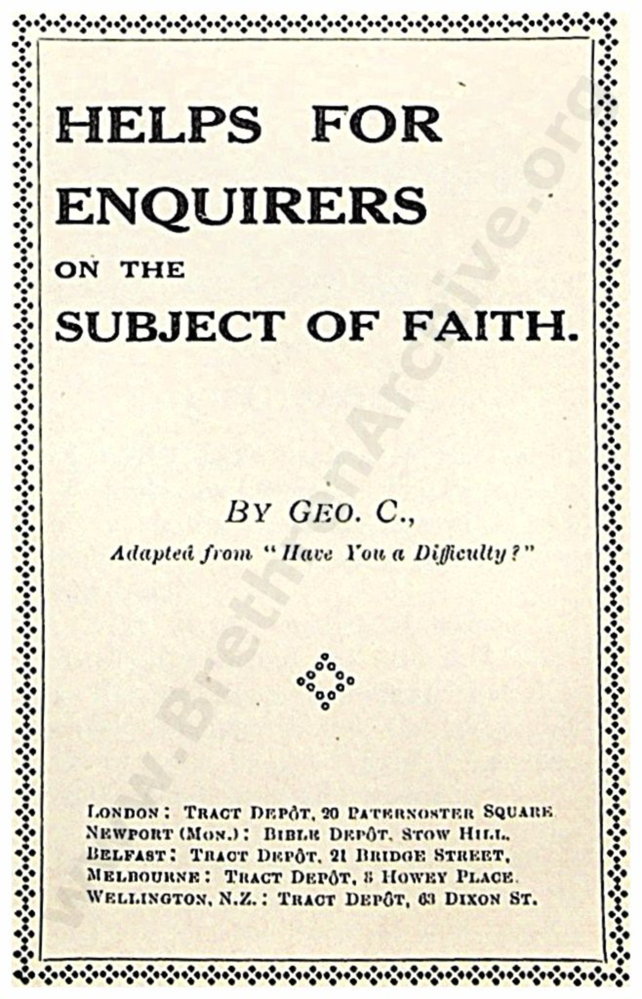 Helps for Enquirers on the Subject of Faith