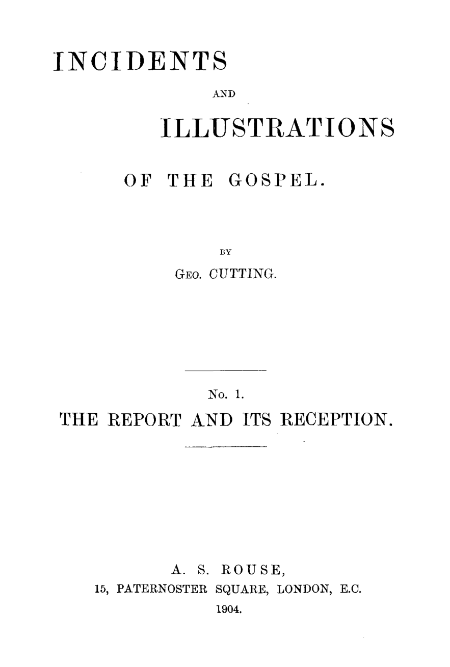 Incidents and illustrations of the Gospel; No.1 - The Report and its Reception