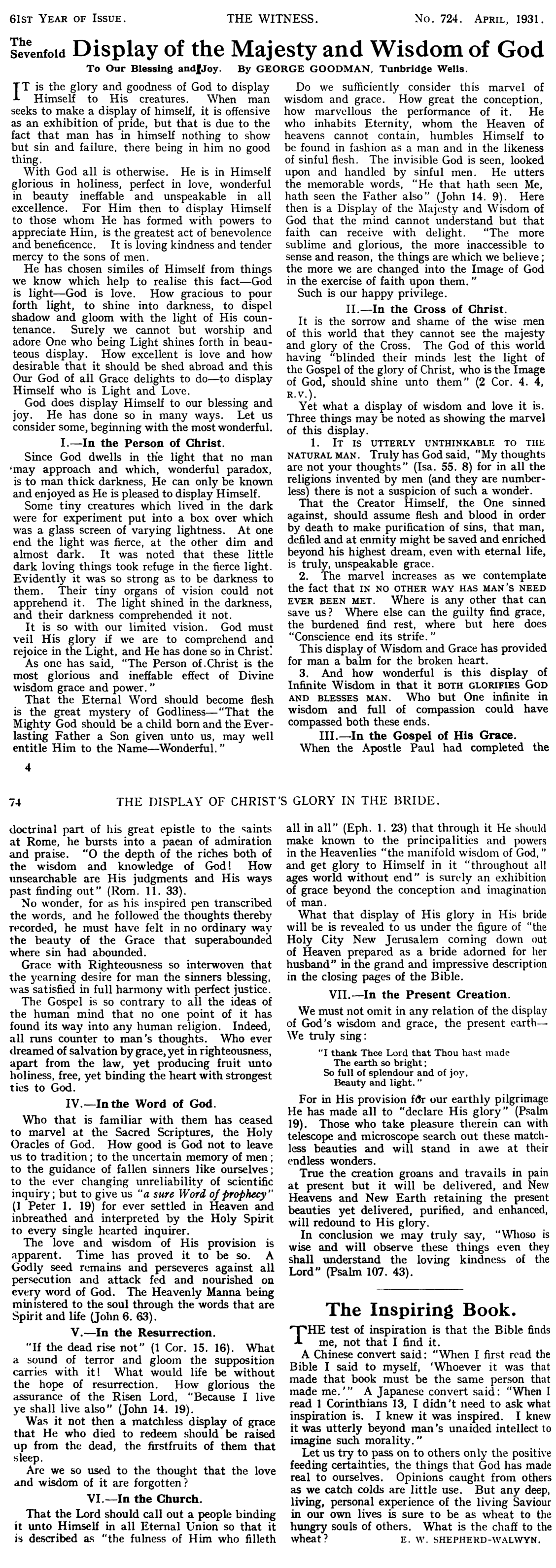 The Sevenfold Display of the Majesty and Wisdom of God