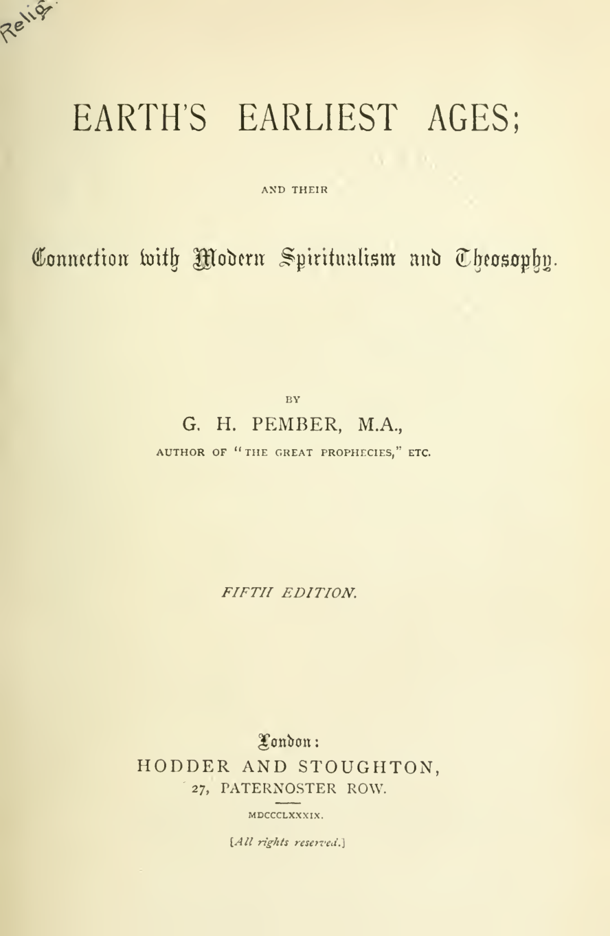 Earth's Earliest Ages; And Their Connection with Modern Spiritualism and Theosophy (Fifth Edition)