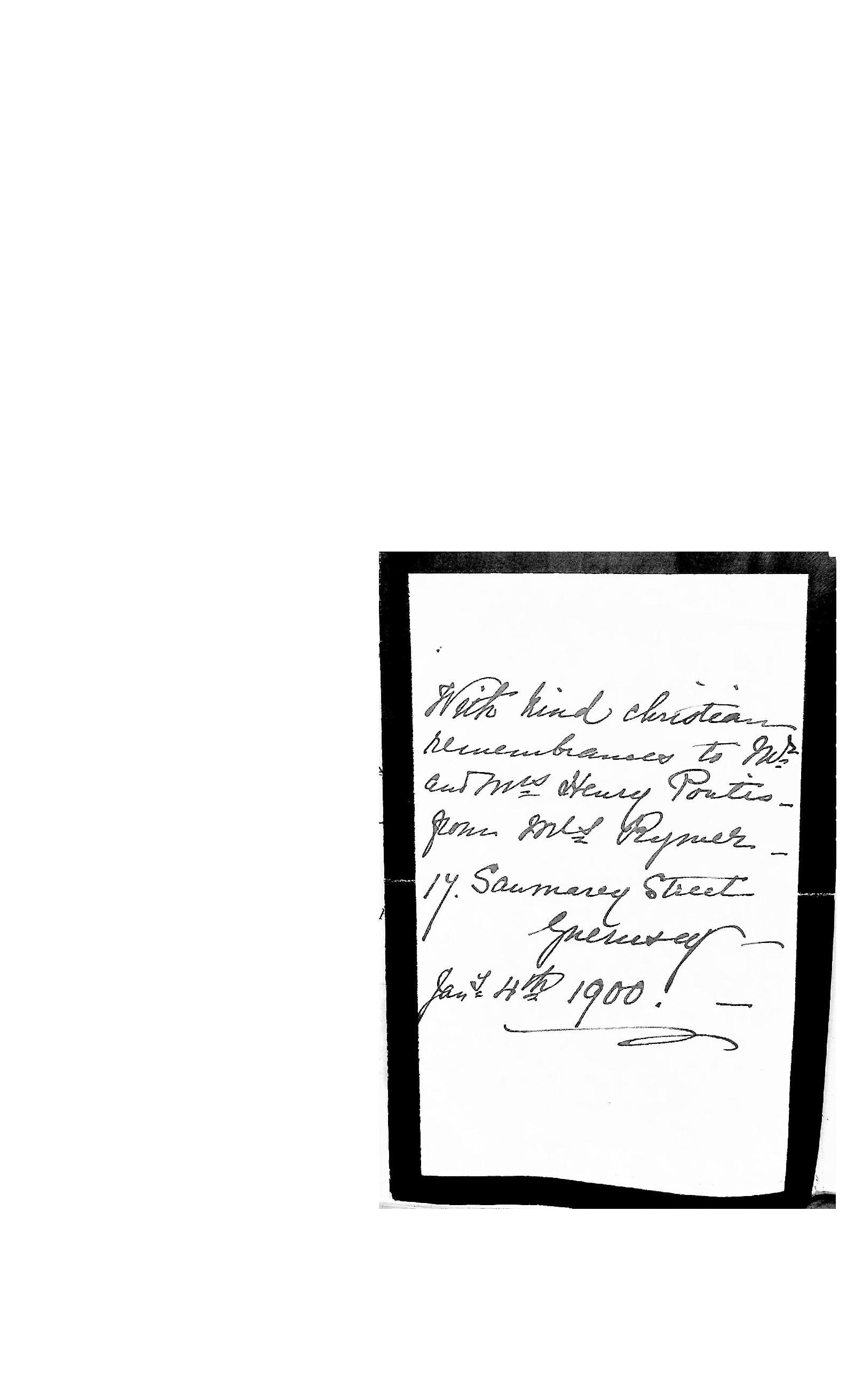 With kind Christian remembrance to Mr and Mrs Henry Pontis from Mrs Rymer.