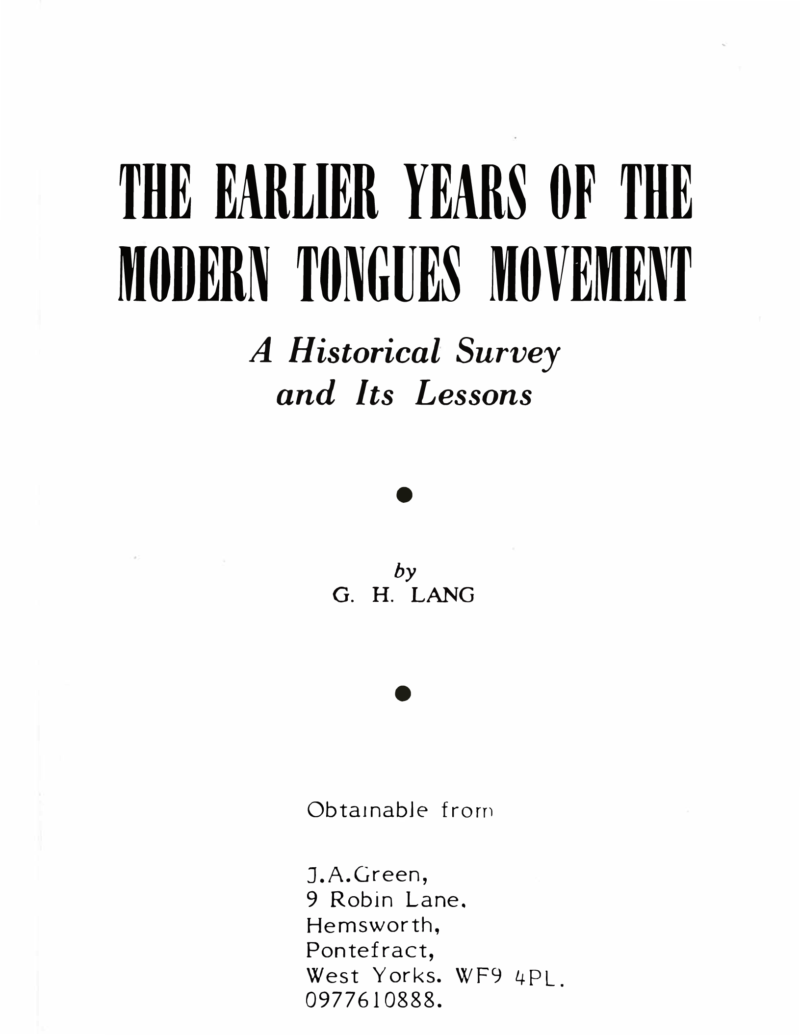 The Earlier Years of the Modern Tongues Movement. A Historical Survey and its Lessons