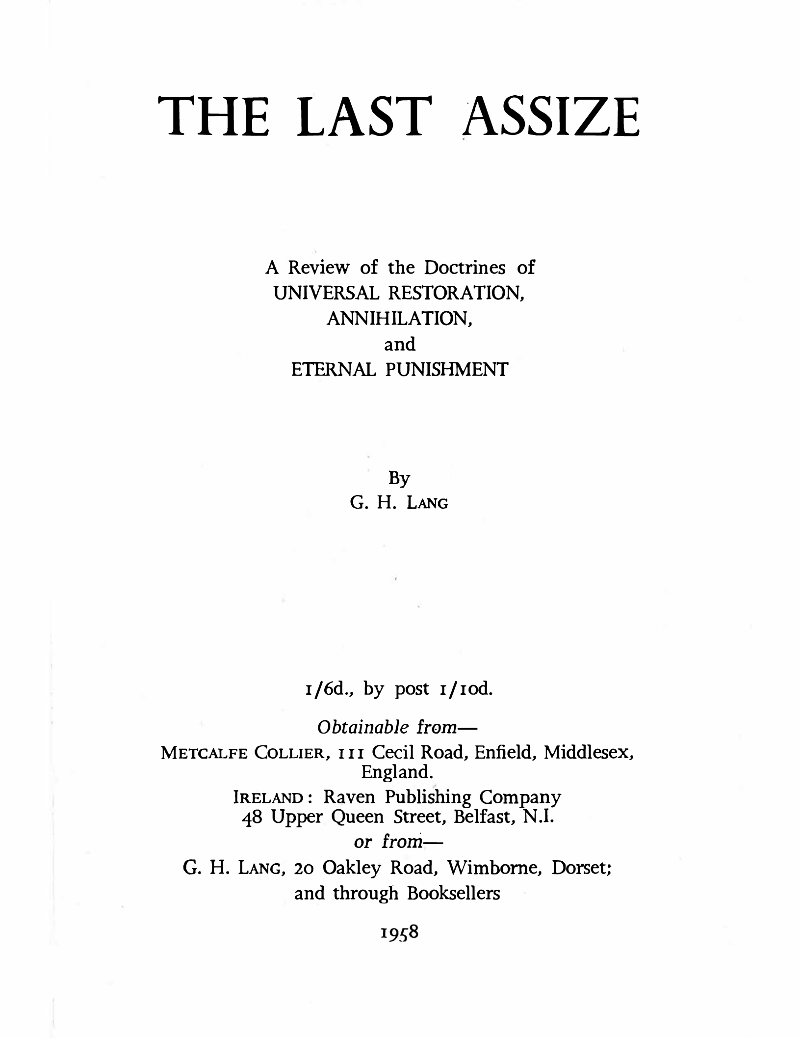 The Last Assize - A Review of the Doctrines of Universal Restoration, Annihilation, and Eternal Punishment