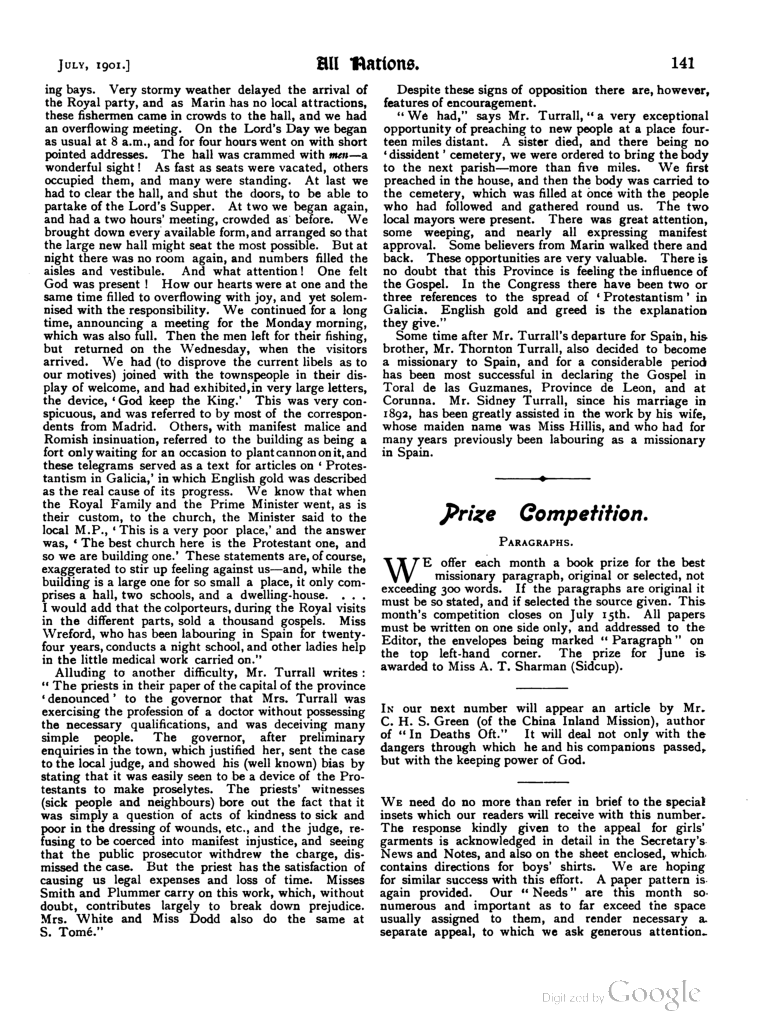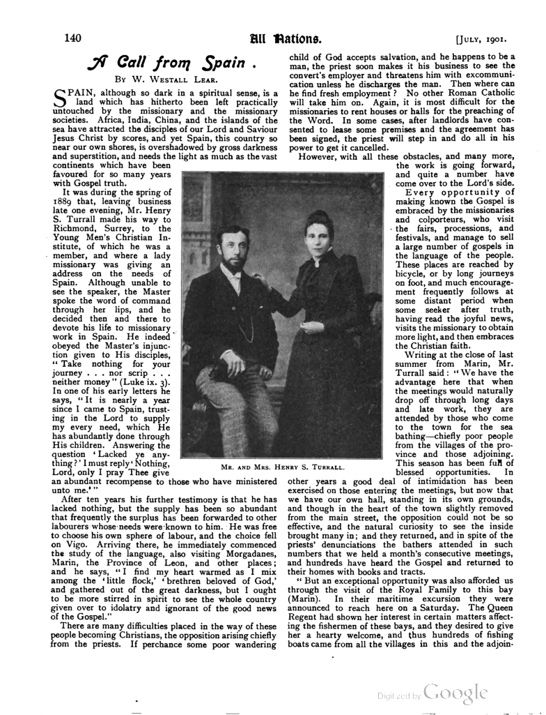 Marín, the town referred in this article, is my town. The assembly still is going on and with the blessing of the Lord. The Turralls (don Enrique and doña Adelaida for the Spanish) are well remembered in the town (don Enrique has a street in the town) and they are buried in the cemetery here.