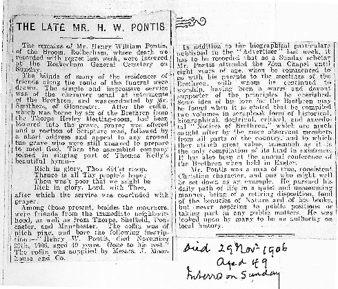 Some idea of his love for the Brethren may bo found when it is stated that he compiled two volumes in scrapbook form of historical, biographical, doctrinal, critical, and anecdotal “Notices of Brethren,” which are much sought after by the more observant members from all parts of the country, and to which they attach great value, inasmuch as it is the only compilation of its kind in existence. It has also been at the annual conference of the Brethren when held in Exeter.