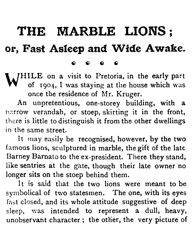 The Marble Lions; or, Fast Asleep and Wide Awake